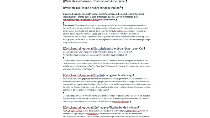 Hier findest du alle Materialien für deine Kommunikation rund um JobRad®: Sowohl Basis-Infos für deine Website und Ladengeschäft, als auch tiefergehende Materialien zu Upselling-Themen wie Zubehör und mehr.