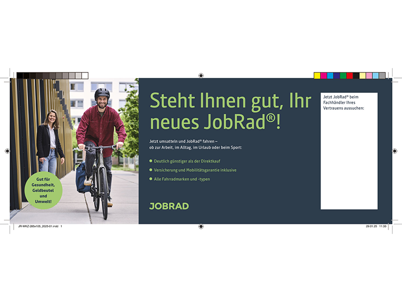 - JobRad®-Flyer mit deinen Kontaktdaten und dem Logo deines Unternehmens